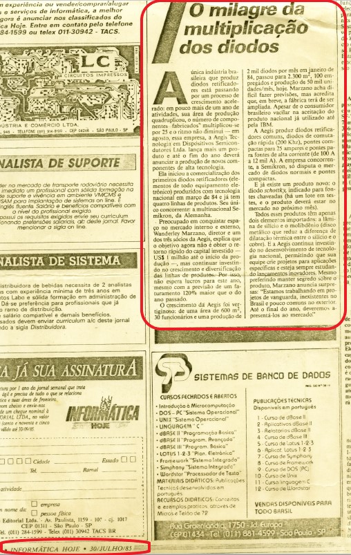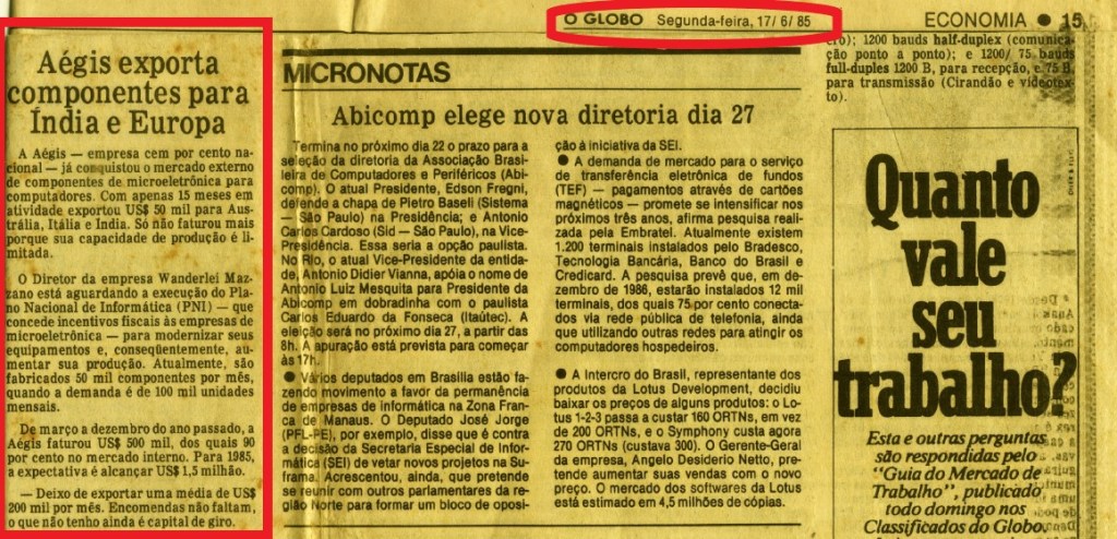 Article from “Informática Hoje” newspaper of 30/07/1985