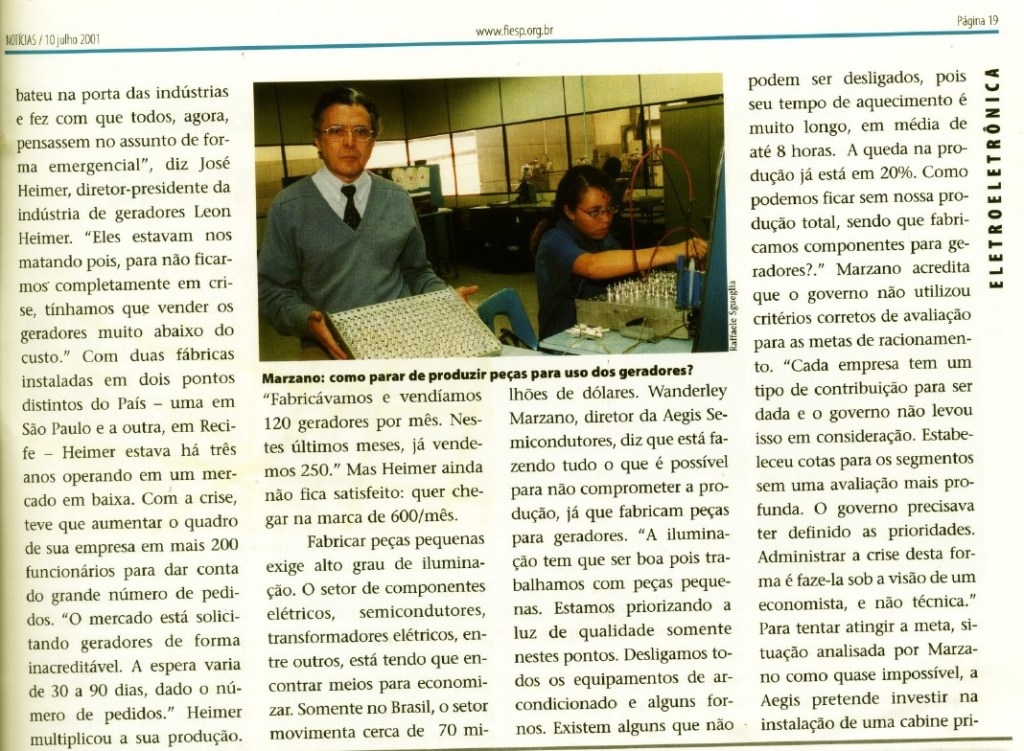 Article from “Noticias – FIESP” magazine of 10/07/2001
